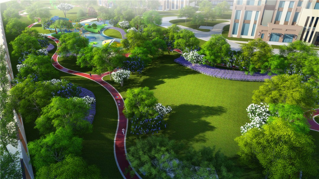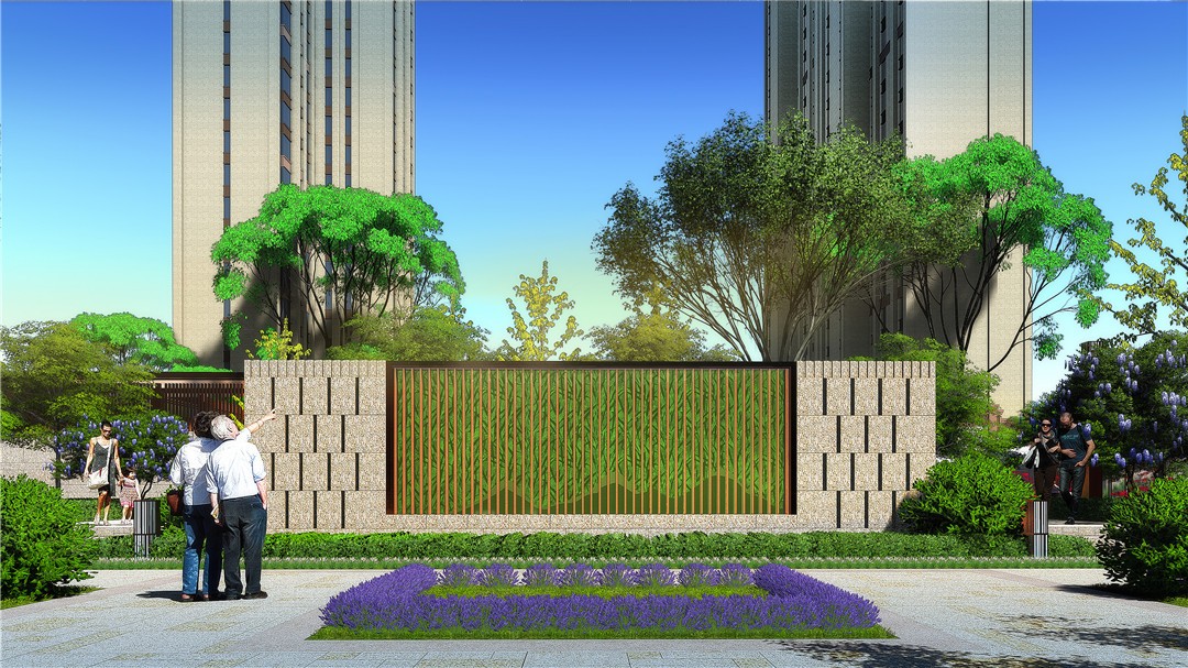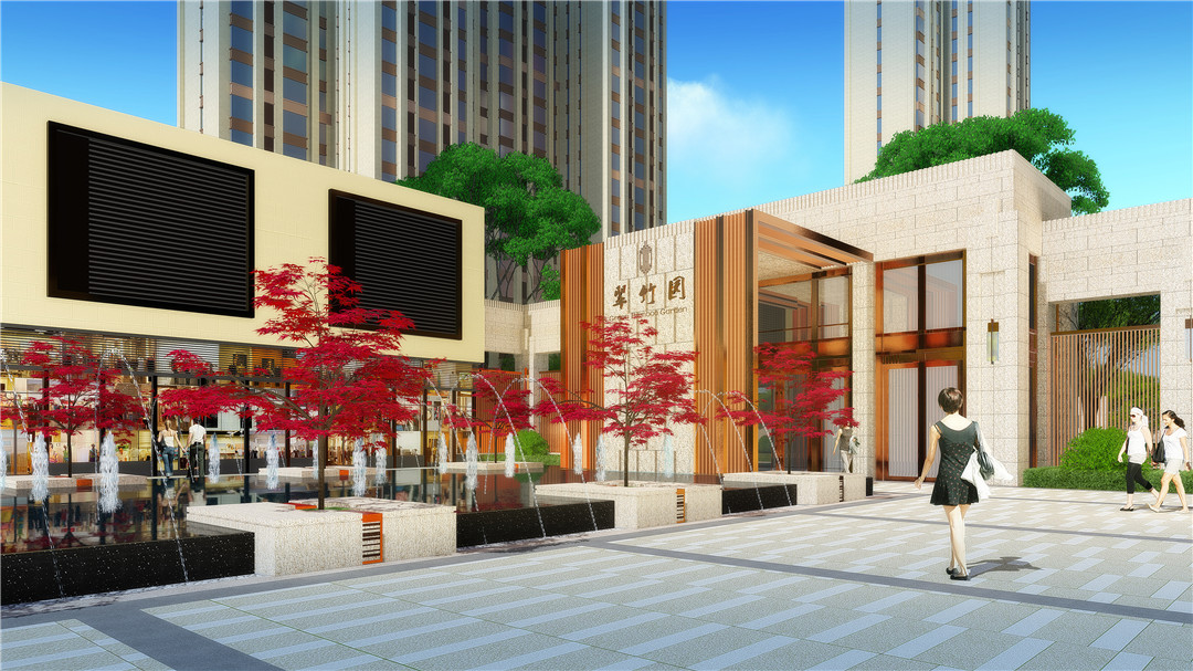 商業及綜合辦公樓為現代風格,材質為米色石材灰色鋁板結合玻璃幕墻,住宅為ARTDECO風格,材質以米灰色涂料和深棕色石材為主,景觀在材質上與建筑相呼應。