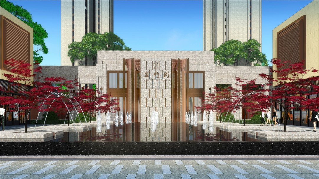 其二商業中庭,設計為后期商業運營留出空間,打造一處”幽篁里”特色景觀,作為中庭空間標識,