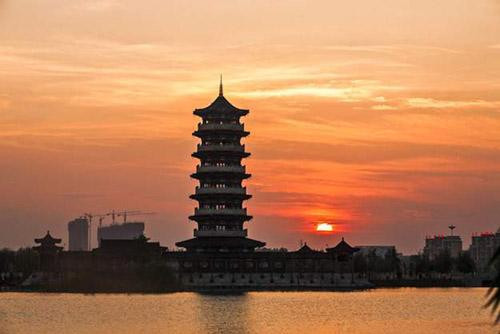 在柘城容湖生態景區,遠遠就可以看到一座七層八角式的白瓷塔聳立湖畔,與湖光水色相映成趣,成為柘城縣容湖生態景區一處熱門景點,這里也是柘城著名的“七臺八景”之一。